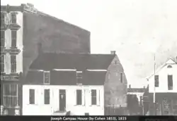 Campau lived in a log house on the south side of Jefferson Avenue, between Shelby and Griswold, that was built after the fire of 1805.[3] Frederick E. Cohen made a painting in 1853 of Campau house that was built in 1815.[3] It was also located between Shelby and Griswold on Jefferson Avenue.[13][b]