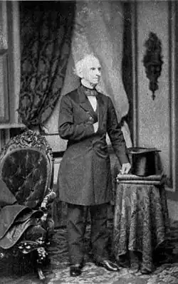 Cogswell received the appointment, and would probably have accepted it, but, Astor finding that he was likely to lose his invaluable services, made him superintendent of the new library. After the rich merchant's death, in 1848, Cogswell traveled to Europe to purchase books. Cogswell made many acquaintances among European intellectual elites during his frequent visits to Europe, including Johann von Goethe, Alexander von Humboldt, Pierre-Jean de Béranger, Lord Byron, and Walter Scott. His general bibliographical knowledge was of great service to the Astor Library, one great work undertaken by him being the preparation of an analytical and alphabetical catalogue of the collection.[4] He also gave the Astor Library his own valuable series of works relating to bibliography, as he had before united with a friend in presenting Harvard with a rare cabinet of minerals and numerous botanical specimens.