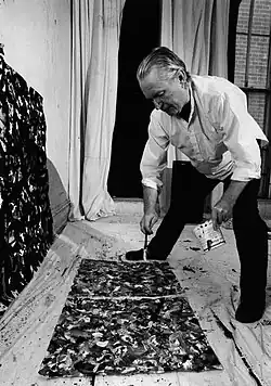 ![]() Joseph Glasco painting an abstract painting in his studio in the early 1990s. | |
