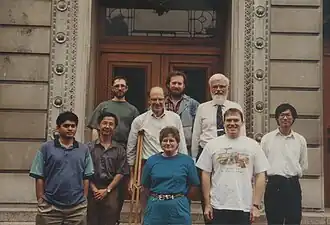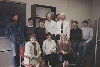 Eberly had longstanding research connections with Poland, publishing several papers with Polish physicists Adam Kujawski and Krzysztof Wódkiewicz in the 1960s and 1970s.[18][19][20] He maintained a frequent scientific collaboration with 2022 Wigner Medal recipient Iwo Białynicki-Birula and was elected as a foreign member of the Polish Academy of Sciences.[21] Eberly also co-authored multiple publications with Kazimierz Rzazewski, who served as both his M.Sc. and Ph.D. supervisor. Their collaboration led to the discovery that the superradiant phase transition, originally observed at the University of Rochester, necessitates the existence of an "extraterrestrial" ether with a real and negative dielectric constant in the quantum vacuum. This finding challenged the notion that classical electromagnetic gauge fields alone could cause such a phase transition, aligning with the electromagnetic version of the Bohr-van Leeuwen theorem.[22]