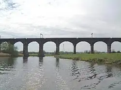 Locke's route avoided as far as possible major civil engineering works. The main one was the Dutton Viaduct which crosses the River Weaver and the Weaver Navigation between the villages of Dutton and Acton Bridge in Cheshire. The viaduct consists of 20 arches with spans of 20 yards.