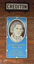 Locke is credited with choosing the location for Crewe and recommending the establishment there of shops required for the building and repairs of carriages and wagons as well as engines.[2]