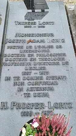 Joseph (Adam) Lortz (13 December 1887 in Grevenmacher, Luxembourg – 21 February 1975 in Luxembourg) was a Roman Catholic church historian. He was a highly regarded Reformation historian and ecumenist. Beginning in the 1940s, Lortz made his ecumenical views available to general readers as well as to scholars in order to promote reconciliation between Catholics and Protestants. His writings played a role in the thinking that manifested itself in the Second Vatican Council's Decree on Ecumenism, Unitatis Redintegratio (21 November 1964). What was not widely known, however, was Lortz's involvement with Nazism from 1933 until 1937.[1] His Geschichte der Kirche (1932) (History of the Church) portrayed the church of the 1800s and the 1900s as the bastion of divine truth and moral values amid what he considered the decay of Western society.