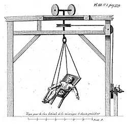 Cox introduced a new treatment called swinging to effect change in blood flow in the head and body, a practice that had been advocated by Erasmus Darwin (1731-1802), a physician and naturalist. The patient was suspended in a chair or bed and swung in an oscillatory or circular manner at varying tempos. Nausea, vomiting, and convulsions were produced but often refreshing sleep followed.