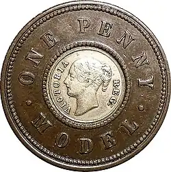 He also created model coins for the denominations 1/32, 1/16, 1/8, 1/4, and 1/2 farthing, mille, 1/2 penny, florin, and crown.[3]