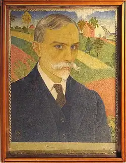 ![]() Self-Portrait (1925), Buon Fresco panel in wooden case | |