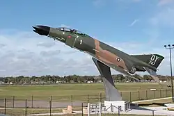 In spring 2014, the mayor of Orange County, the mayor of Orlando, the GOAA Board, and other City of Orlando and GOAA officials approved the installation in the park of a restored USAF F-4 Phantom II aircraft. The National Museum of the U.S. Air Force picked an F-4D previously on display in Corsicana, Texas (Air Force serial no. 65-0747) to be moved to Orlando for display.[45] It was subsequently determined that Kittinger had flown this particular F-4D on several occasions when it was assigned to his fighter wing in Thailand during the Vietnam War, and later when it was assigned to his fighter wing in Great Britain. Disassembled in Texas and transported in two semi-trailers over several days, the aircraft arrived in Orlando on July 22, 2014. It was restored by a team of volunteers at Orlando Executive Airport and painted with the colors and markings of the squadron that Kittinger commanded during the Vietnam War. The restored aircraft was mounted on its pylon and formally dedicated on December 14, 2014.[46][47]