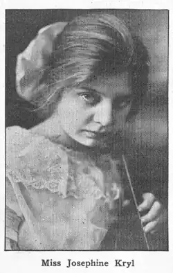As a soloist, Josephine Kryl appeared with the Chicago Symphony Orchestra in 1915,[8] in recitals with Emmy Destinn in 1917,[9] and with the Rochester Symphony in the 1930s.[10] "Josephine Kryl has many natural gifts of temperament and talent," noted one report in 1920. "To these she adds a firmly grounded knowledge of her instrument acquired in exhaustive study which was started at an early age."[11]