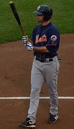 In 2009, he hit .284/.385/.418 for the Savannah Sand Gnats in the A-level South Atlantic League, with 38 doubles and 73 walks.[24] He was voted a SAL Mid-Season All-Star.[31] Still, he recalled years later, "You just look around and you're like, 'I'm really far from the big leagues.' I used to tell myself in Low A, 'Well, I'll just go to law school.'"[32] He closed out the season by playing seven games for the St. Lucie Mets in the A+ Florida State League, batting .364/.464/.591.[30]