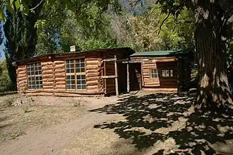 The ranch house started as a low square log cabin, with a kitchen added later. The house is surrounded by dependent structures, such as a chicken house, outhouse, root cellar, sheds and a small barn. A bridge provided access to the root cellar, located across the creek.[2]