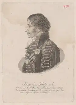Josip Kušević (also spelled Joseph Kussevich, 23 May 1775 – 5 July 1846) was a Croatian politician and lawyer. He was the prothonotary of the Croatian realm and a member of the Croatian Parliament and the Diet of Hungary. As a politician, he opposed the introduction of Hungarian as the official language in Croatia. Kušević is known for De municipalibus iuribus et statutis regnorum Dalmatiae, Croatiae et Slavoniae – the work compiling and advocating the rights of Croatia to a special status within the Austrian Empire and the Kingdom of Hungary, i.e. the Croatian state right.