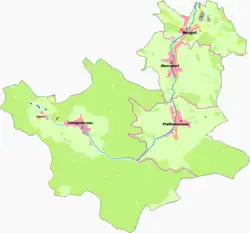 Although similarly named after the stream, Jossa is an Ortsteil of the municipality of Sinntal. There is also the Naturraum Jossgrund which includes Mernes, Marjoss and Jossa in addition to the municipality Jossgrund.[3]