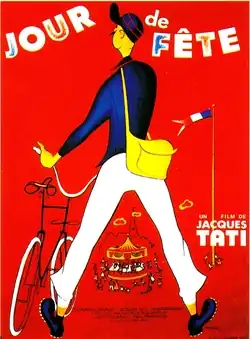 Jour de fête (The Big Day) is a 1949 French comedy film starring Jacques Tati in his feature film directorial debut as an inept and easily distracted mailman in a backward French village. Shot largely in and around Sainte-Sévère-sur-Indre, where Tati had lived during the Occupation, most of the actors were unknown and villagers served as extras.