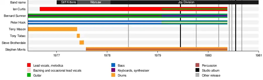 - Ian Curtis – lead vocals, melodica (1976–1980; his death); guitar (1979–1980)