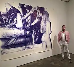 Since 2000, he has exhibited his work at museums all around the world, like the Museum Kunsthalle der Hypo-Kulturstiftung in Munich,[2] Kunsthalle Emden (Germany), the Kunsthal Rotterdam (Netherlands), the Cube Museum Seongnam Arts Center, Seongnam, (South Korea), the Da2 Museum in Salamanca and the ARTIUM in Vitoria (Spain). He represented Spain at the 2nd Prague Biennale (curated by Flash Art Magazine and Giancarlo Politi) and has received numerous international awards: Prize of the Royal Academy of Spain in Rome, the ABC Painting Prize.[3] and the Scholarship of the College of Spain in Paris. He has published poetry books and curated exhibitions with artists such as Joseph Kosuth and Nobuyoshi Araki. His work can be found in the Artium Museum, Vitoria, Museo ABC, Madrid, Collection of the Ministry of Foreign Affairs of Spain, Collection of the Royal Academy of Spain in Rome, Absolut Collection, etc.[4]