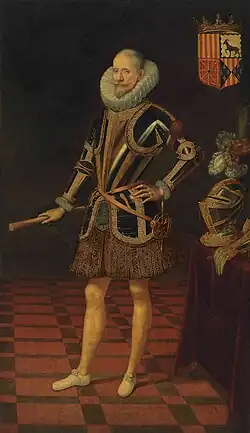 Upon the death of his grandfather in 1554, the two year old Juan Francisco became the 3rd Duke of Híjar, however, the title wasn't recognized until 1599.[3][4]