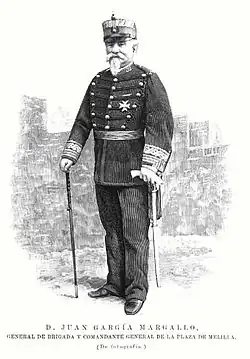 Juan García y Margallo (12 July 1839 – 28 October 1893) was a Spanish governor of Melilla (1891–93) and general who was defeated and killed during the Rif War, which is also called the Margallo War after him.[1] He is the great-grandfather of Spanish diplomat and former Minister of Foreign Affairs José Manuel García-Margallo.