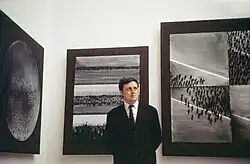 Despite his formal artistic education, Genovés distanced himself from the academic orthodoxy very early on.[4] After briefly trying out several different styles, he moved steadily towards figurative painting.[5] His work began to be defined in the sixties, because of his original way of uniting what he was representing and how he presented it. He uses a language that is strongly influenced by photography and film, reminiscent of North American pop art, with techniques involving aerosols, printing and stencils, to produce images that look as though they have been created by machine; thus, the artistic message runs through the entire work, not just in the mark of the brush. In other words, he gets sustenance from mass media and pop art in his manner of representing the objects that typify mass culture but walks away from the subjects portrayed by that culture. Herein lies the particular force of his work: the mixture between a language of mass communication, united with the dramatism of a political and social context. The priority for Genovés was to reflect turbulent social and political reality, not just the one in which Spain was immersed, but also what many other countries were suffering. Living through a dictatorship in his own country, active participant in strikes and demonstrations repressed by that dictatorship,[9] he was witness and collector of images of civil conflicts taking place in Peru, Northern Ireland, the United States and Vietnam, among others.[10] He upends into his work that entire aesthetic of fear and repression, giving us painting that is easy to access, with socially committed issues, worlds away from the fashionable informalism of the time.[10]