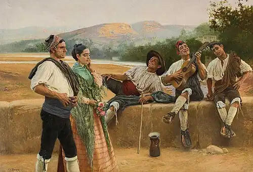In 1897, the Diputación de Zaragoza named him Professor of Coloring and Composition at the Academy and, in 1909, he was confirmed as an interim Professor of Art History and Decorative Arts at the "Escuela Superior de Artes e Industrias".[2] He began a series of travels in 1911, visiting France and returning to Italy. He finally settled in Madrid, where he continued to exhibit regularly. He died there, aged 69, after being run over by a streetcar.