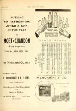 Juan Mencarini was educated in Madrid and Singapore.[3] In 1881, he was admitted at the Revenue Department of the Chinese Maritime Customs Service in Guangdong province, although he spent his first years at the Inspectorate General in Beijing studying Chinese.[4] In the following years, as was usual practice at the Customs Service, Mencarini changed post in a number of occasions: Xiamen (1883), Tamsui (the port of present-day Taipei, 1884), Shanghai (1889),[5] Fuzhou (1892), Xiamen (1896),[6] Hankou (1900),[7] Shanghai (1903)[8] and again Xiamen (1907),[9] gradually ascending rank from an initial position as 4th Assistant B to that of acting deputy Commissioner.[10] Mencarini's Chinese name was 绵嘉义; pinyin: Mián jiāyì.