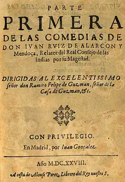 Juan Ruiz de Alarcón (c. 1581[1] – 4 August 1639) was a New Spanish writer of the Golden Age who cultivated different variants of dramaturgy. His works include the comedy La verdad sospechosa (es), which is considered a masterpiece of Latin American Baroque theater.
