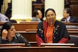 Juana Aidé Huancahuari Páucar is an ethnic Quechua[1] Peruvian politician. She was a Congresswoman representing Ayacucho for the period 2006–2011, and belongs to the Union for Peru party.