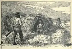 According to Emma Hardacre, there are differing accounts as to the discovery of the Lone Woman. The first is that Father José González Rubio of the Santa Barbara Mission offered a man named Carl Dittman $100 to find her. The second, and what appears to be the original account, from George Nidever states that Father José González Rubio paid one Thomas Jeffries $200 to find Juana Maria, though he was unsuccessful.[8] The tales Jeffries told upon returning managed to capture the imagination of George Nidever, a Santa Barbara fur trapper, who launched several expeditions of his own. His first two attempts failed to find her, but on his third attempt in the autumn of 1853, one of Nidever's men, Carl Dittman, discovered human footprints on the beach and pieces of seal blubber which had been left out to dry.[9] Further investigation led to the discovery of Juana Maria, who was living on the island in a crude hut partially constructed of whale bones.[10] She was dressed in a skirt made of greenish cormorant feathers. It was believed that she also lived in a nearby cave.