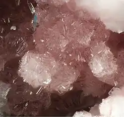 Juansilvaite is a very rare,[2] complex arsenate-sulfate mineral with formula Na5Al3[AsO3(OH)]4[AsO2(OH)2]2(SO4)2·4H2O.[3] It is both hydroxyarsenate and dihydroxyarsenate. It is among few relatively new minerals from the Torrecillas mine in Chile, the other being torrecillasite, canutite, chongite, gajardoite, leverettite, and magnesiokoritnigite.[4] Although having quite common among minerals space group C2/c, juansilvaite has a new type of structure.[3]