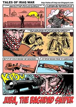 Juba[1] (Arabic: جوبا), sometimes spelled Joba, is the pseudonym of an anonymous sniper with the Sunni insurgent group Islamic Army in Iraq involved in the Iraqi insurgency, featured in several videos released between 2005 and 2007. Juba became famous after videos showing footage of his shootings appeared online. The second of these videos shows Juba marking a tally of 37 "kills".[2] Juba became a folk hero among many Iraqis due to his role in fighting against the American military in Iraq.