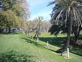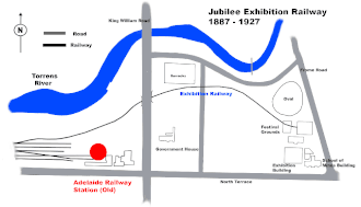 The Jubilee Exhibition Railway was a railway spur in Adelaide, South Australia. It was built in 1887 from where the Adelaide station currently is to the Jubilee Exhibition Building which stood near Frome Road on what is now part of the University of Adelaide. The line used an existing tunnel under King William Road which had been built in 1854 for horses and cattle to cross the road without disrupting traffic.[1][2] The tunnel is likely the origin of rumours about rail tunnels located under the city of Adelaide.[3] Much of the land where the line once ran has been reused as parts of the University of Adelaide and the Adelaide Festival Centre. There were no stations built. No known evidence of the line remains today.