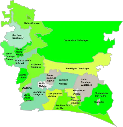 ![]() Oaxaca regions and districts: Istmo to the east | |