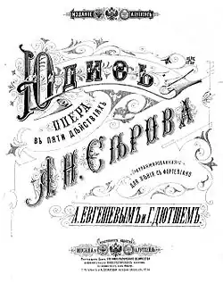 - Serov, Alexander. Юдифь: опера в пяти действиях. Арранжированная для пения с фортепианом А. Евгениевым и Г. Дютшем. [Judith: opera in five acts. Arranged for voice and piano by A. Yevgeniev and G. Diutsh.] Москва: А. Гутхеиль, 1885.