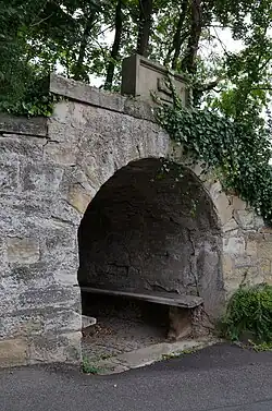 The marriage of Bretislav and Judith was perpetuated in the theatre play Bretislaus, also named Bretislav and Jitka, written by the Czech author Jan Campanus Vodňanský (1572–1622) in 1614.[17][18] The performance was then forbidden, considered detrimental to the reputation of the Bohemian monarchs.[18] According to legend, Judith during her kidnapping lost a shoe when Bretislav's horse galloped downhill from the Schweinfurt monastery; since the 19th century a masonry cave with a stone shoe marks the site.