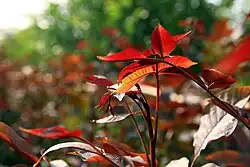 Juglans regia 'Zijing' (Chinese: 紫京彩叶核桃树,紫京核桃树) is a cultivar of walnut developed in Beijing, China.[1] It was developed from mother trees of purple-leaved walnut, which was found in the mountains of Qingshui, Mentougou District, China in 1998.[2]