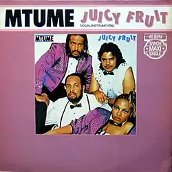 "Juicy Fruit" is a song written by James Mtume and released as the lead-off single from Mtume's third album, also titled Juicy Fruit. It features lead vocals by Tawatha Agee. The mid-tempo song is Mtume's most well-known, proving enormously successful on R&B radio stations when first released. The song is about oral sex.[4][5]