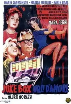 Juke box - Urli d'amore is a 1959 Italian musicarello film directed by Mauro Morassi. The film stars Mario Carotenuto and contains cameos by singers Mina and Adriano Celentano.