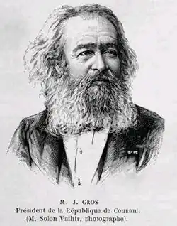 Jules Gros (French pronunciation: [ʒyl ɡʁo]; 3 March 1829 – 30 July 1891) was a French journalist and Secretary of the Société de géographie. He became the President of the unrecognised Republic of Independent Guyana in South America in May 1887, but was deposed in September 1887.