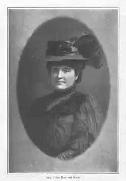 Julia Barnett Rice was born May 2, 1860, in New Orleans, Louisiana. She died on November 18, 1929.[3]