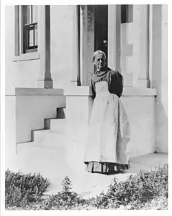 In 1856, the Williams family moved to Santa Barbara where Albert was offered the position of keeper for the newly built lighthouse. He only served as keeper for a few years, and after a couple of other keepers came and went, Julia was offered the position in 1865. Her husband moved to the city. There was no well at the lighthouse so, in addition to caring for her six children, Julia had to walk a mile to a spring with her children and a horse, to bring home cans of water. This trip was repeated to obtain firewood.[2] Each night, "she climbed the three flights of stairs at sunset and lighted the lamp. Every night at midnight, the lamp was trimmed or changed for a fresh one, and every morning as the sun touched the mountain tops, the same hand extinguished the light and drew the curtain across the lens and she went about her household duties.”[3] She recorded the amount of oil used for the lamp, how many hours the lamp burned, and the condition of the weather.[4] She also had to wipe all the steps leading up to the light to avoid getting dust on the lenses.[5] Julia treated her position as a calling as well as a job. "When a storm is raging, and a lonely ship is struggling along, aided by my light, I fancy that it is like a soul in the sea of life, buffeted but guided by the light of the sea of Bethlehem."[6]
