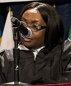 Julia Sebutinde (born 28 February 1954) is a Ugandan jurist. She is currently serving her second term on the International Court of Justice (ICJ) following her re-election on 12 November 2020.[1] She also is the current chancellor of Muteesa I Royal University, a university owned by the Buganda kingdom. She has been a judge on the court since March 2012. She is the first African woman to sit on the ICJ.[2][3] Before being elected to the ICJ, Sebutinde was a judge of the Special Court for Sierra Leone. She was appointed to that position in 2007.