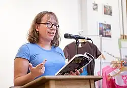 Serano is a slam poet and has given spoken-word performances at universities as well as at events such as the National Queer Arts Festival, San Francisco Pride Dyke March and Trans March stages, Ladyfest, outCRY!, Femme 2006 and in The Vagina Monologues.[21] She was a guitarist and vocalist for the band Bitesize from 1997 through the early 2000s and has also recorded solo music.[16][22]