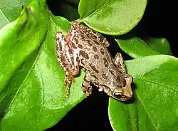 - ^ Faivovich; et al. (2018). "On the Monophyly and Relationships of Several Genera of Hylini (Anura: Hylinae), with Comments on Recent Taxonomic Changes in Hylids". South American Journal of Herpetology. 13 (1): 1–32. doi:10.2994/SAJH-D-17-00115.1. hdl:11336/94370. S2CID 90074090 – via Bienvenido al Repositorio Institucional del CONICET.