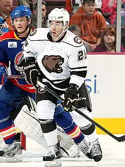 ![]() Brouillette (right) with the Hershey Bears in 2013 | |||