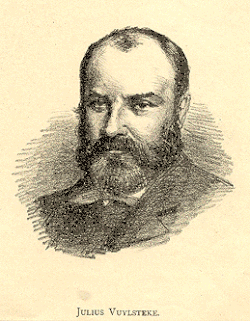 Julius Vuylsteke (Ghent, 10 November 1836 – Ghent, 16 January 1903) was a Belgian liberal politician and writer. He started his career as a lawyer, but later opened a bookshop. As a liberal Flemish politician, he founded the liberal association 't zal wel gaan, and he played an important role in the Flemish movement. Julius Vuylsteke promoted cultural cooperation of Flanders with the Netherlands. He became President of the Willemsfonds, and after his political career he gave his attention mainly to the history of Flanders. In 1867, he founded the Flemish weekly Het Volksbelang, which appeared for the first time on 12 January 1867. In 1867, Julius De Vigne was one of the editors together with Julius Sabbe, Jozef Van Hoorde, and Adolf Hoste.