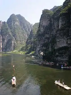 Juma River (Chinese: 拒马河; pinyin: Jùmǎ Hé; lit. 'Stop the horse') is a river in northern China that emerges from a spring-fed lake in Laiyuan County, Hebei Province and flows to Fangshan District in Beijing Municipality before emptying into the Daqing River, a tributary of the Hai River.[1] The length of the river is approximately 254 km. At Shidu, the meandering river creates a deep valley in the scenic karst landscape. At Zhangfang, the river forks into the Northern and Southern Juma, both of which flow into the Daqing. The Beijing–Yuanping Railway follows the Juma River through the Taihang Mountains.