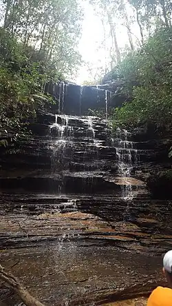 Junction Falls are located in the South Lawson Waterfall Circuit, 0.9 kilometres (0.56 mi) from the northern carpark, and consists of two waterfalls at the junction of Ridge and Lawson Creek.[3] Eastern Whipbirds and Musky rat-kangaroos are found in the track near Junction Falls, and many Blue Gums are also present.[4]