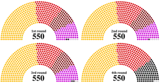 - Round 4: a simple majority required to win, with only the top two candidates that received the most votes in the third round contesting.