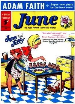 As Amalgamated Press, Fleetway Publications had effectively created the British girls' comic with the million-selling School Friend in 1950, and the likes of Hulton Press' Girl and AP's own revamped Girls' Crystal soon cashed in on the market. However, the area turned out to be fast-moving and when Dundee publisher DC Thomson finally entered the market in 1958 with Bunty, its fusion of girls staples with a healthy contingent of relatable waifs and strays saw it chime better with young female readers. After the Mirror Group rebranded AP as Fleetway they set about modernising their girls' comics in response, while Leonard Matthews launched the more aspirational Princess in 1960.[1] The following year Fleetway launched their direct response to Bunty in the shape of June, edited by Jack Hunt (who had been behind the modernisation of Girls' Crystal).[2]
