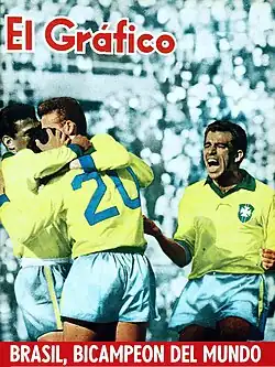 - ^ "Brazil Takes World Title, Beats Czechoslovakia 3-1", Montreal Gazette, June 18, 1962, p20