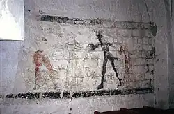Remnants of gothic frescos are visible on the vaults of the church's ceiling. On the west wall of the nave, a scene depicting Danse Macabre is painted.[3]